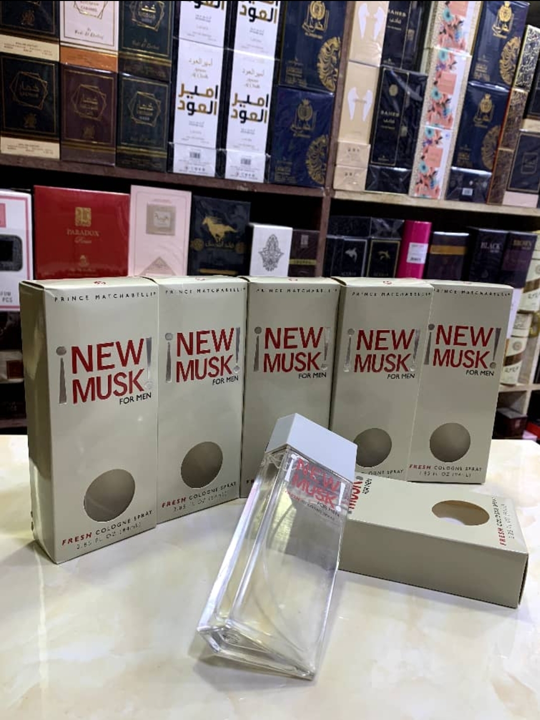 NEW MUSK for MEN COLOGNE possesses a blend of Musk, Sandalwood, Vanilla, And Black Currant.